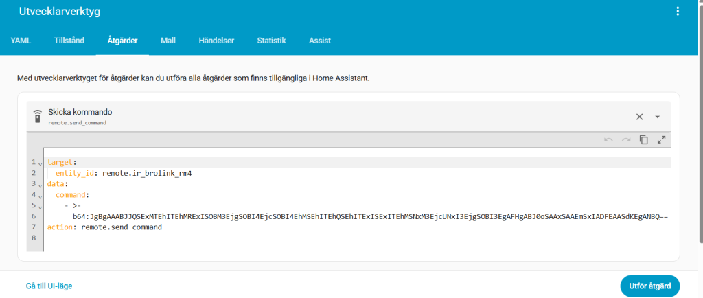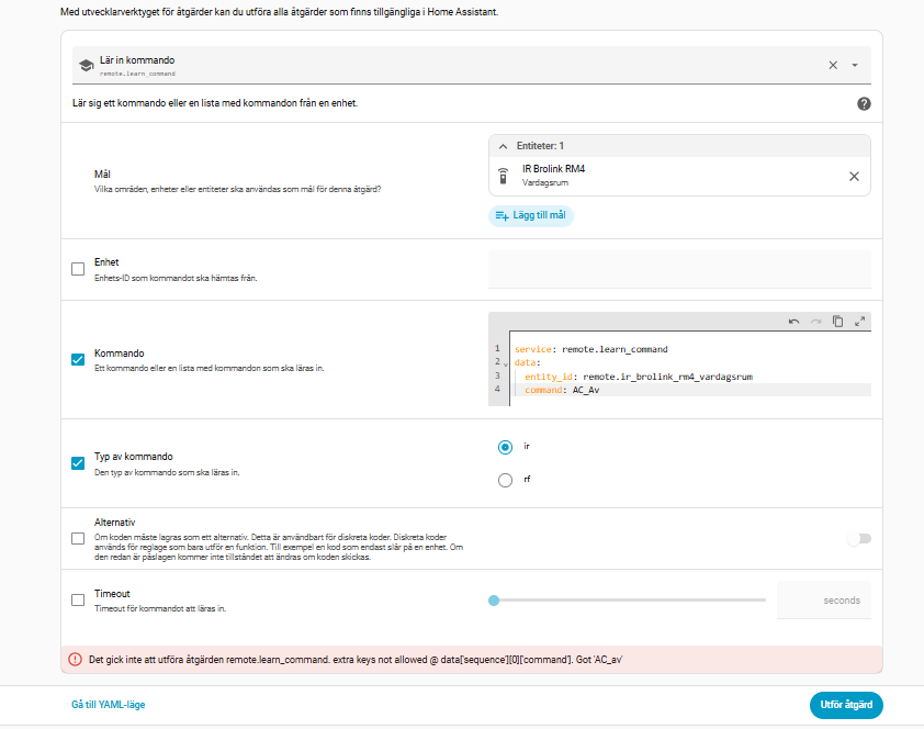 Efter att ha fått lära in koder i Home Assistant fick jag till slut ihop alla koder och för ner dessa i filen /homeassistant/ir_devices/ac_ivt_nordic_converter.yaml .